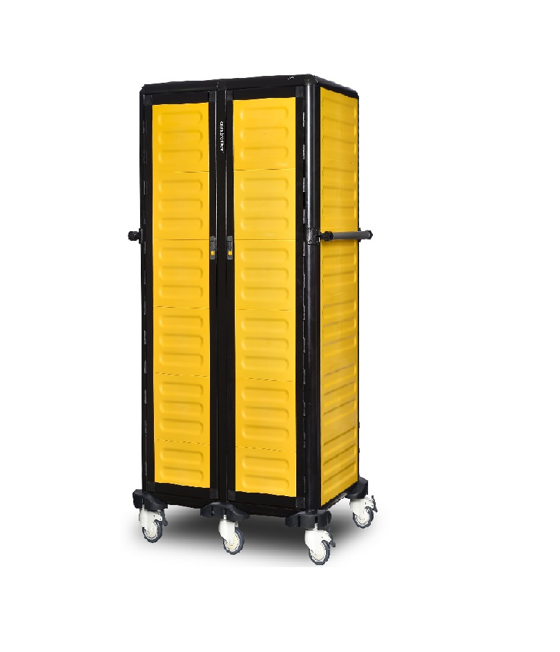 Chariot de transport bacs GN 1/1 complètement fermé avec porte battante double 15 niveaux – PIMAK – G.GN.150.D.4