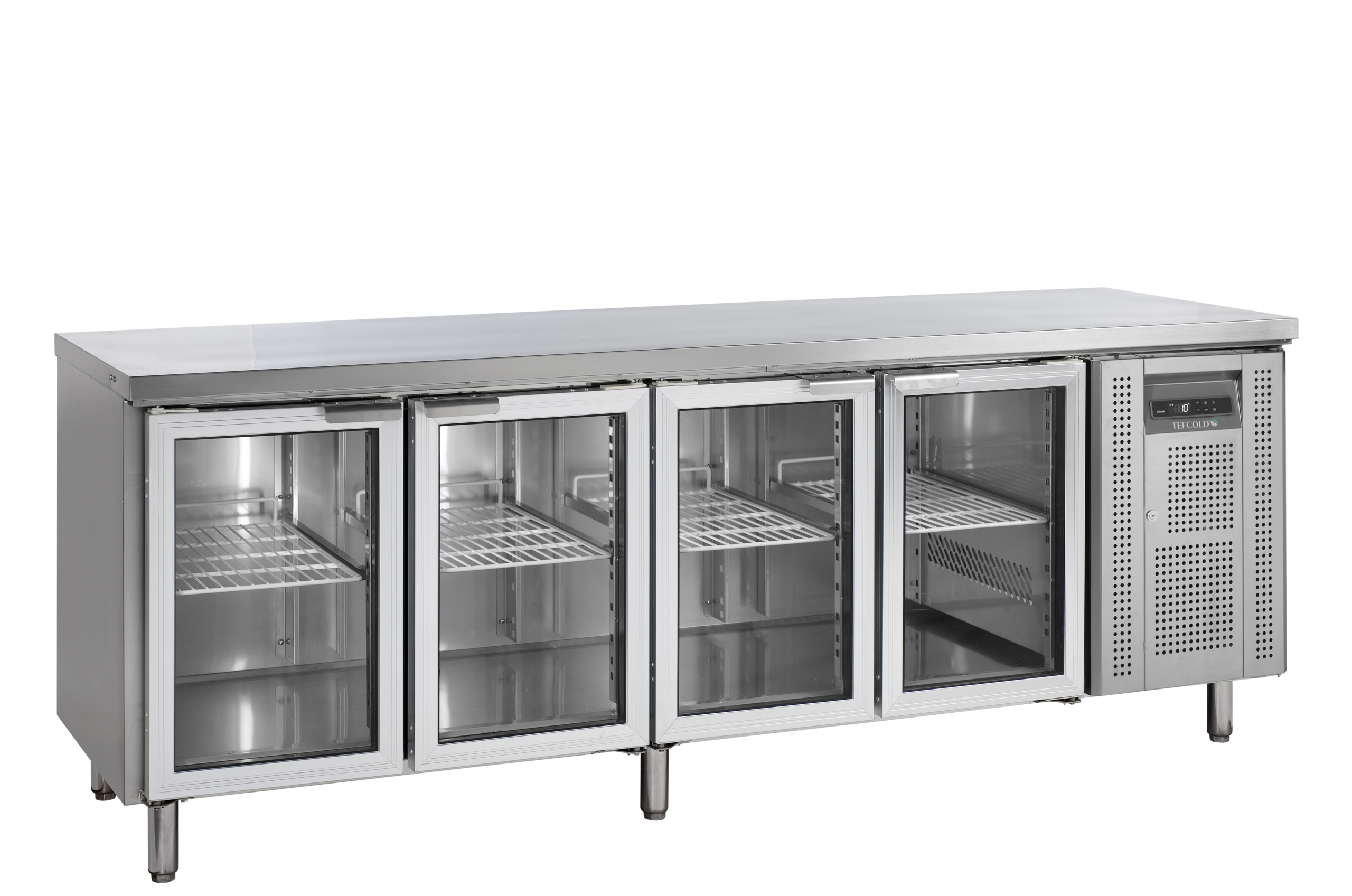 Nouveau design|Acier inoxydable|Dégivrage automatique|Portes à fermeture automatique|Dessus de table amovible avec dosseret|Pieds ajustables|Refroidissement ventilé