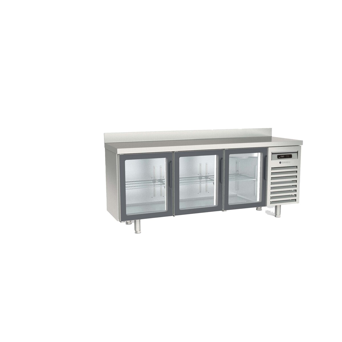 Meuble 600 négatif – Série SNACK – Température -15°/-20°C – 3 portes vitrées (double vitrage + éclairage LED) – Capacité 410L – Extérieur et intérieur en inox AISI-304 18/10 (sauf partie arrière en galva) – Dosseret de 100mm (sans dosseret sur demande) – Thermostat électronique avec afficheur digital, spécial économie d’énergie – Evaporation automatique des eaux de dégivrage – Dégivrage par résistances – Porte emboutie et réversible – Charnières inox – Joint déclipsable – Evaporateur ventilé anti-corrosion et condenseur ventilé et extractible – Pieds inox réglables (hauteur meuble possible 900) – Livré avec 1 clayette rilsan par porte réglable en hauteur sur support inox – Compresseur : 3/8cv – Ambiance 32°C – Alarme haute et basse température sur contrôleur digital