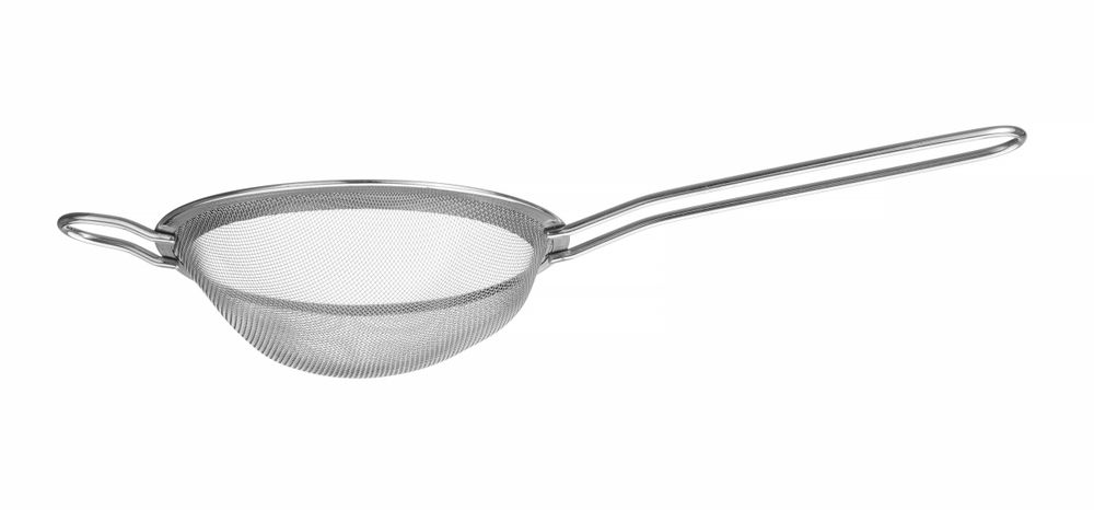 Avec un petit support pour poser la passoire sur un pot ou un bol, ou pour la suspendre.