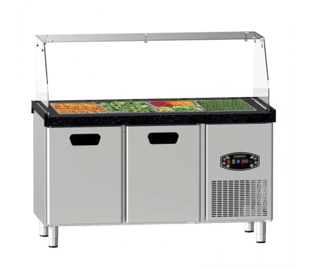 Saladette réfrigérée PIMAK 22TBF2S-SBAR, conçue pour un stockage optimal et une accessibilité facile de vos ingrédients. Idéale pour les cuisines professionnelles grâce à sa robustesse et son système performant de réfrigération.