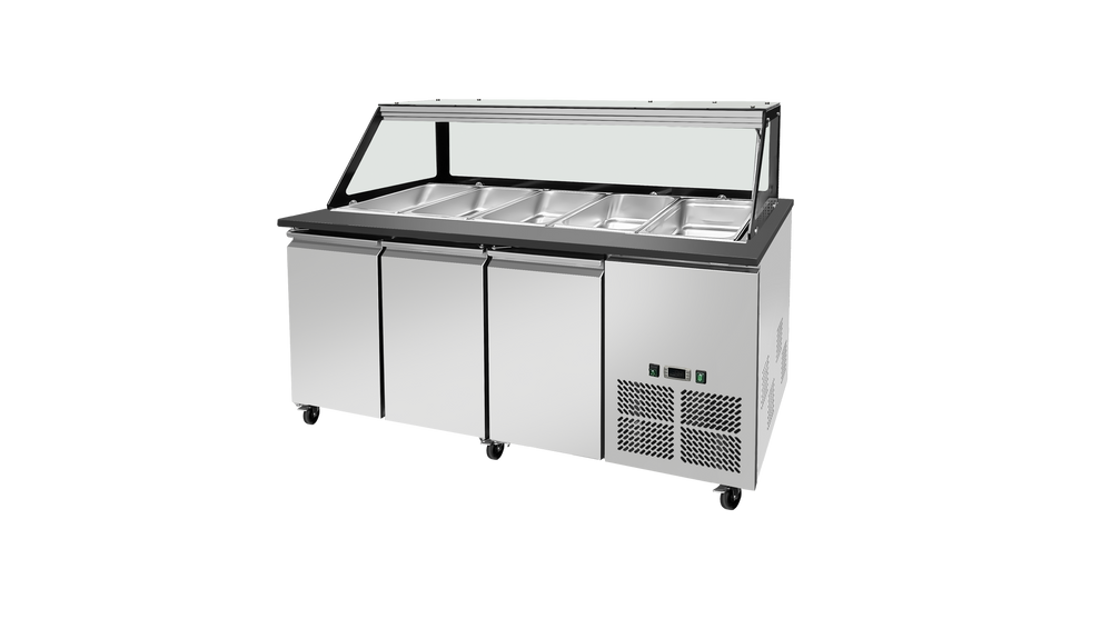 Saladette réfrigérée boisée granit noir gn1/1 x 5 3 portes positive skyrainbow thsai188s